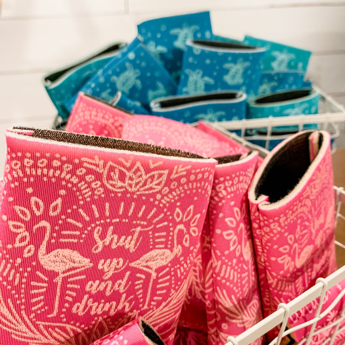 Can Coolers are made from poly foam and are screen printed and sewn by hand in our low-impact print shop.