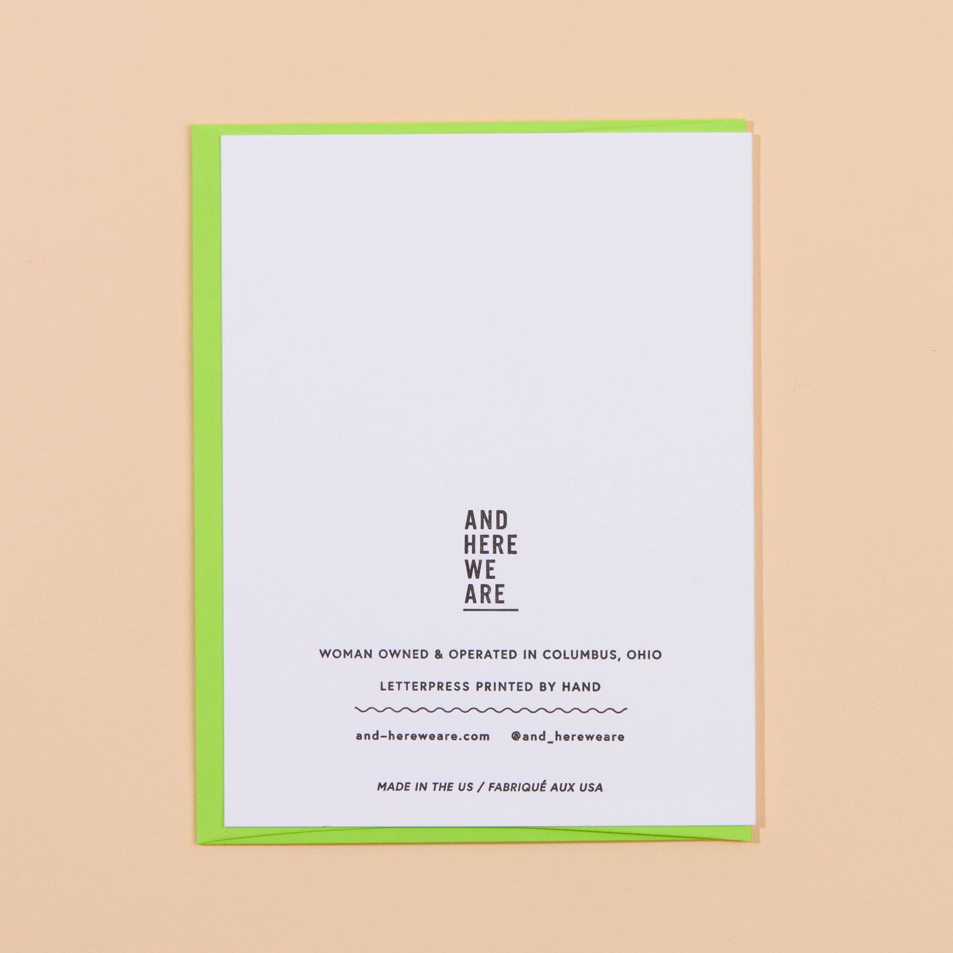 Each card comes with a coordinating envelope and is hand printed in Columbus, Ohio, USA. Words and illustrations by Meghan Hopkins Sokorai.