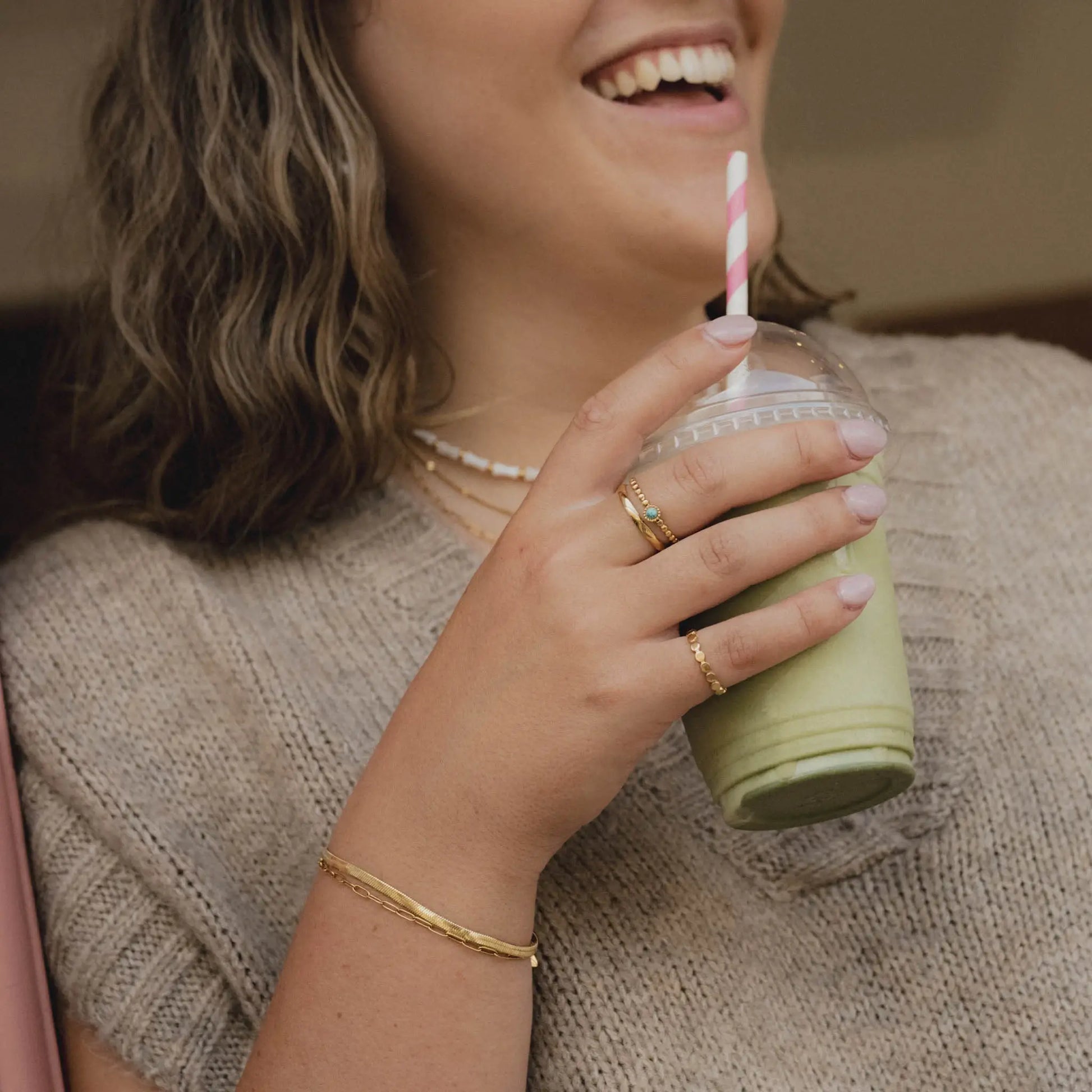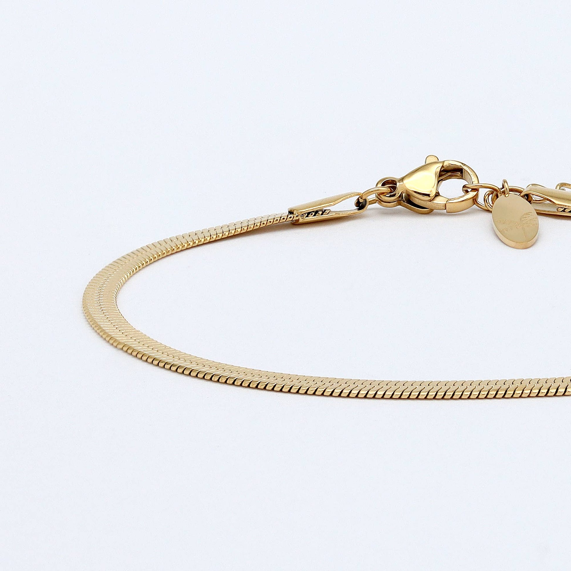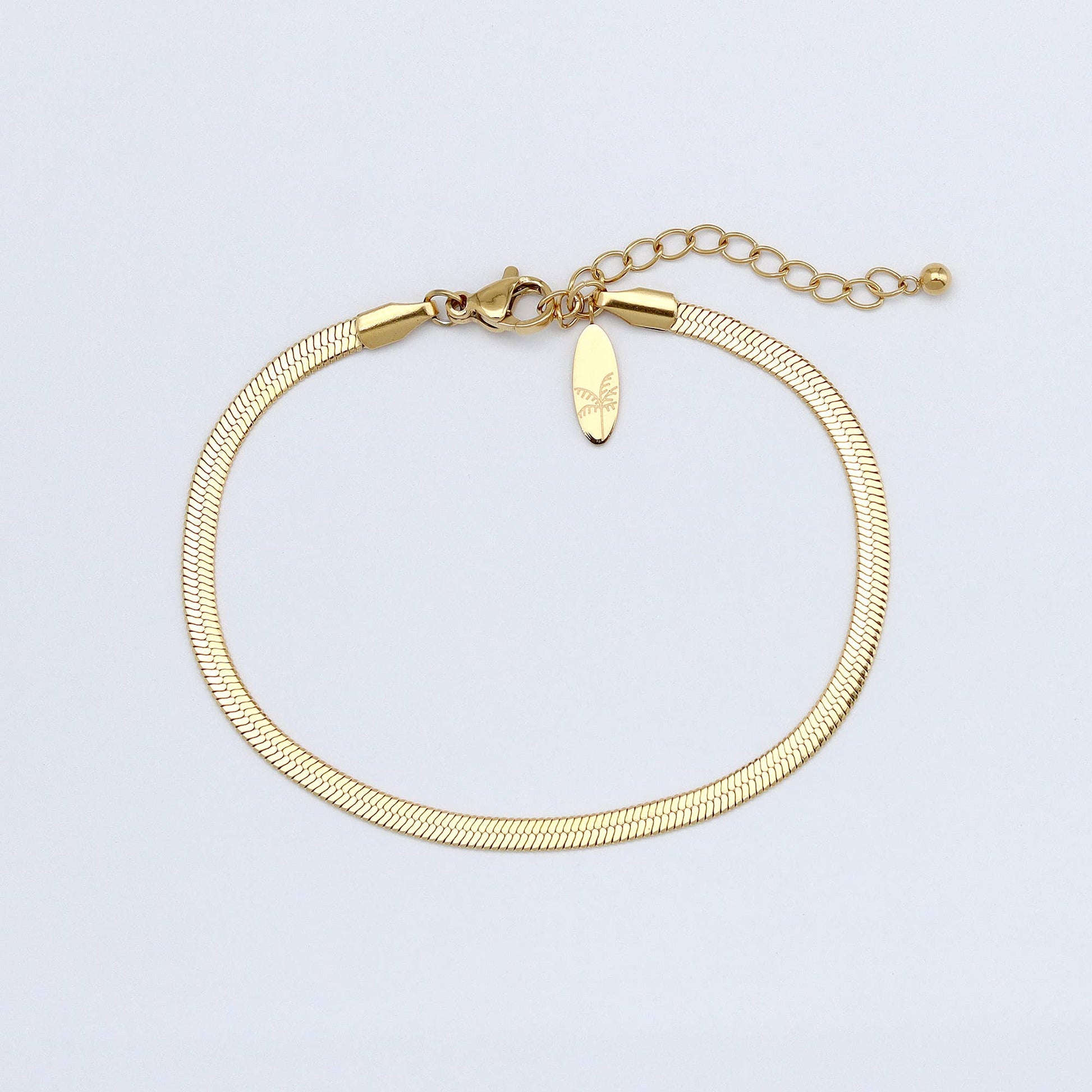 Simple, sleek, and made to shine. The Herringbone Bracelet is crafted from a durable stainless steel chain with a golden finish, giving it timeless style you’ll reach for every day. Lightweight and waterproof, it’s the kind of piece you never have to take off — from morning coffee to ocean swims.