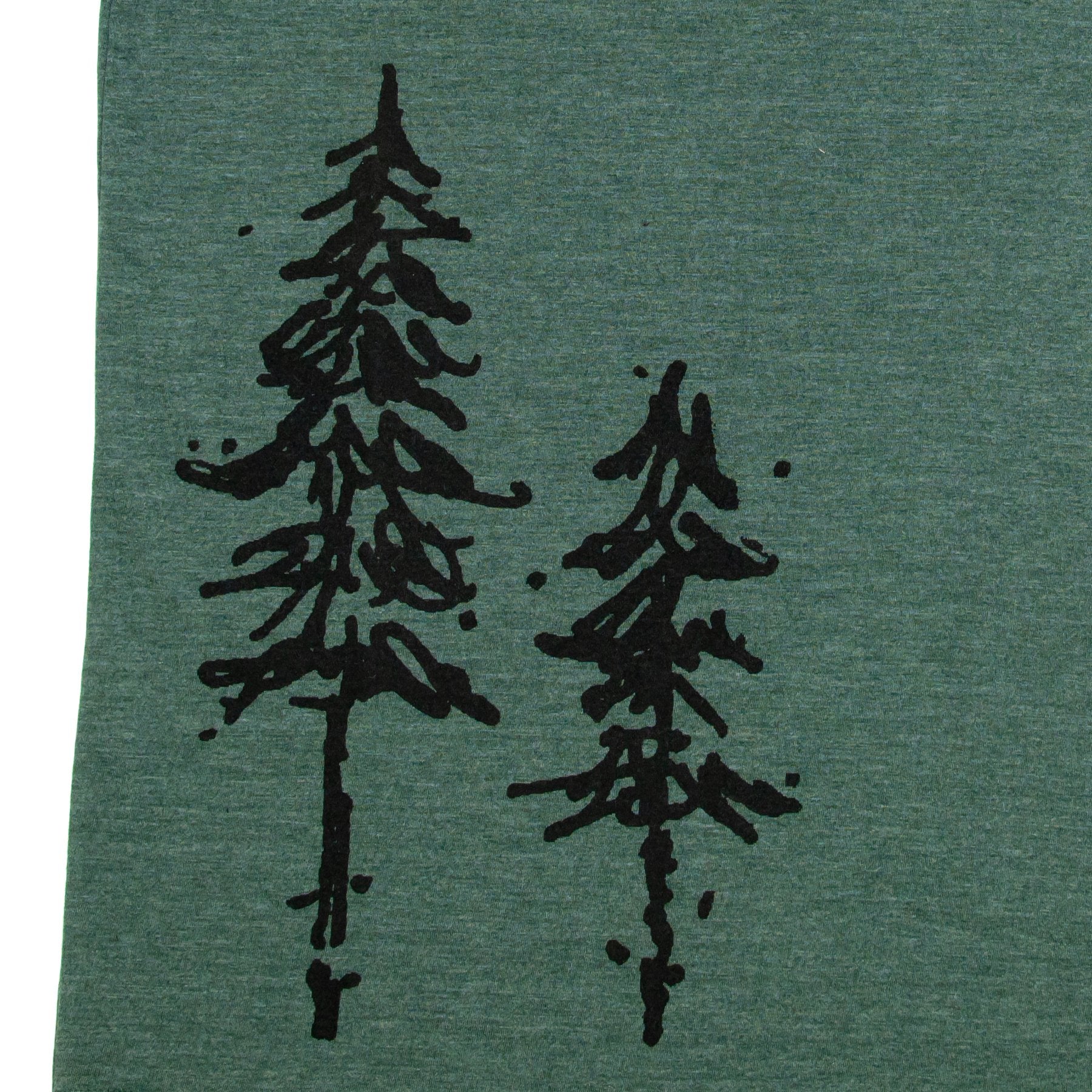 Our pine trees sketch was done with an Ultra-Fine-Point Sharpie and is 1.25" tall in its original form. We then enlarged it to 18" for print on this earthy, eco tee.